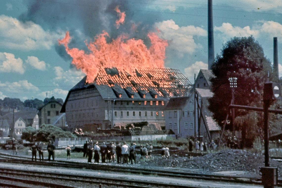 Aufnahme vom Großbrand der Ziegelei Wieland am 20. Juli 1940. Fotos: Erwin Heugle/copyright Stadtarchiv