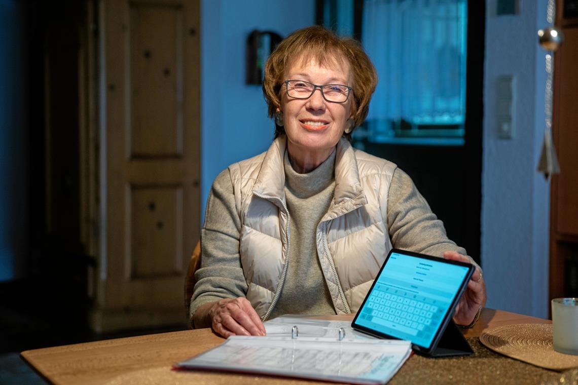 Annelore Burgel demonstriert, wie das digitale Üben vonstattengeht. Foto: A. Becher