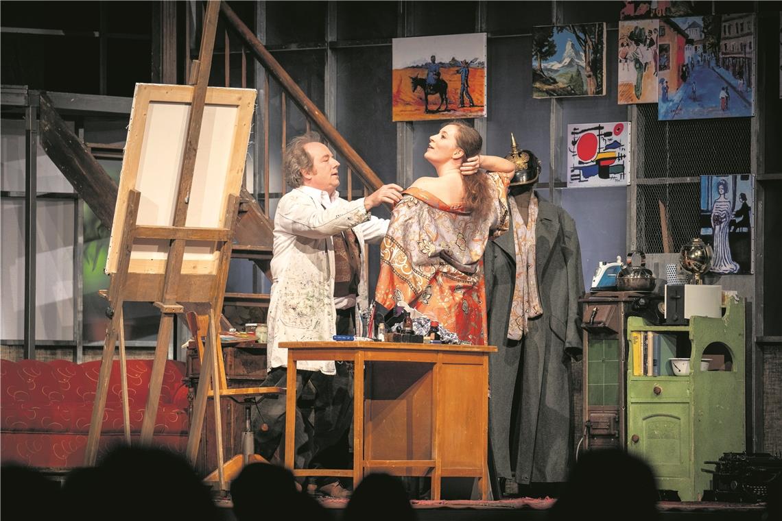 Leidenschaftliche Sexszenen spielen sich versteckt hinter dem alten Sofa in der Fälscherwerkstatt mit reichlich dramatischer Musik ab. Foto: A. Becher