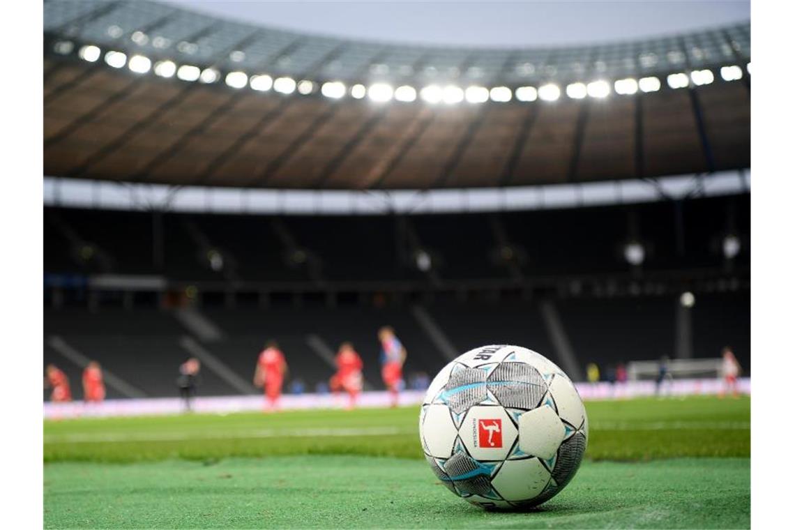 Ein Spielball liegt auf dem Rasen. Foto: Stuart Franklin/Getty Images Europe/Pool/dpa/Symbolbild