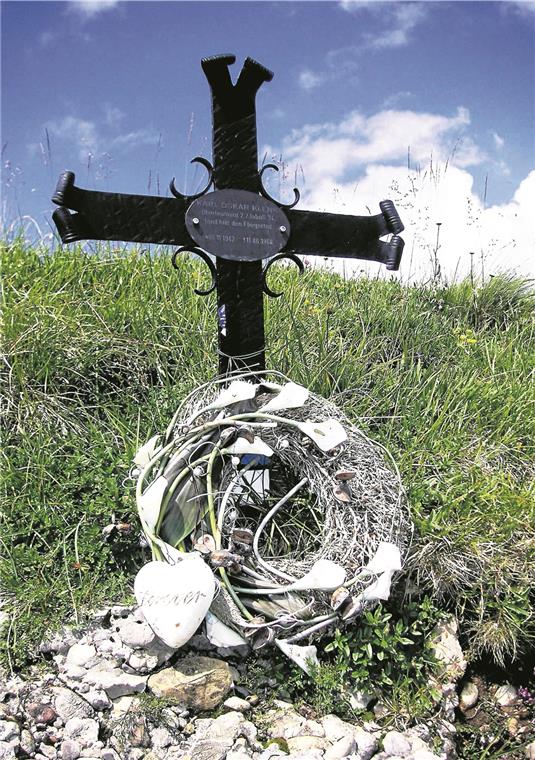 Ein Jahr nach dem Absturz stellten Klenks Fliegerkameraden am Hochgrat dieses Kreuz auf. Die Inschrift lautet: Karl Oskar Klenk – Oberleutnant 2./Jabo G. 34 – fand hier den Fliegertod – *19.11.1942 †11.6.1968. Foto: R. Idler