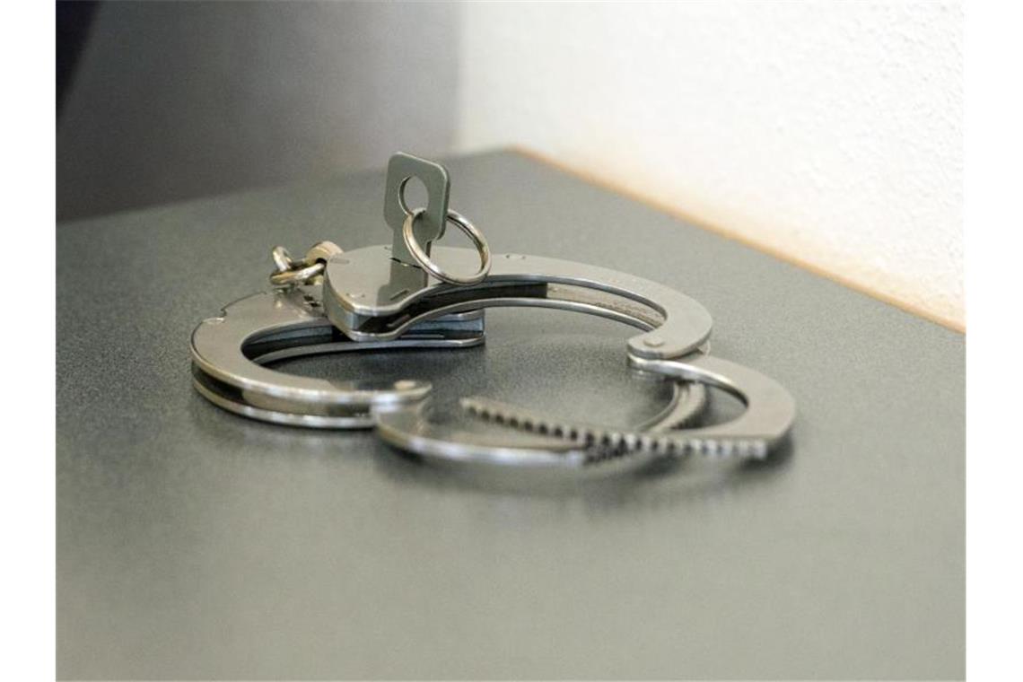 Handschellen liegen auf einem Tisch. Foto: Armin Weigel/dpa/Symbolbild