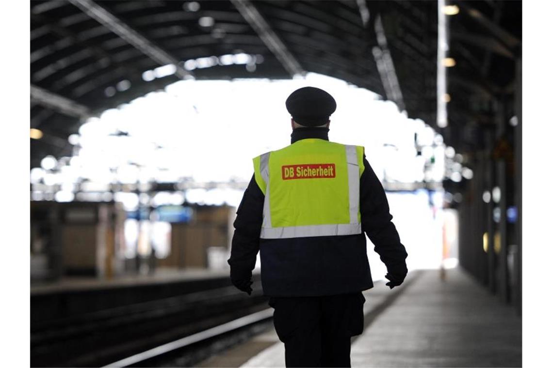 Eine Mitarbeiterin der DB Sicherheit-Einsatzgruppe geht über einen Bahnsteig. Foto: Britta Pedersen/dpa-Zentralbild/dpa/Archiv/Symbolbild