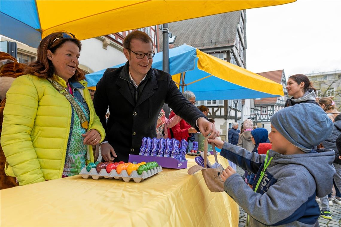 Wer fünf Eier gefunden hatte, konnte sie bei Oberbürgermeister Maximilian Friedrich gegen eine Leckerei eintauschen. Foto: A. Becher