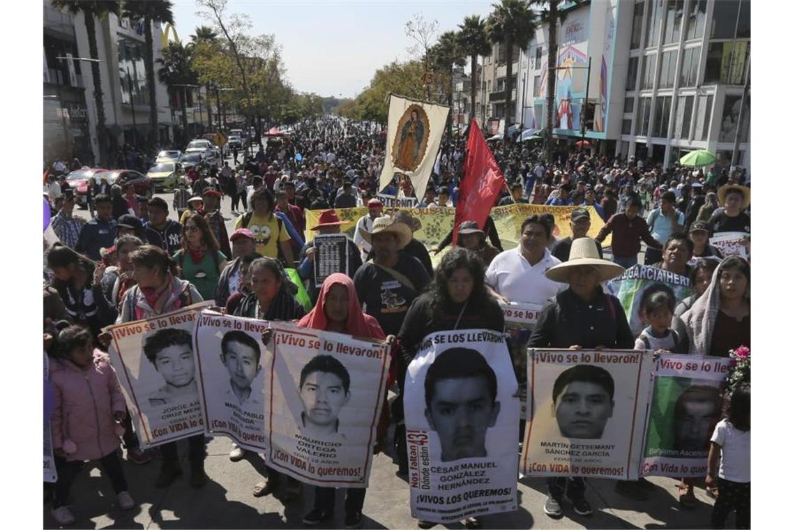Angehörige haben mit Demonstrationen immer wieder an die 43 vermissten Lehramtsstudenten erinnert. Foto: Marco Ugarte/AP/dpa