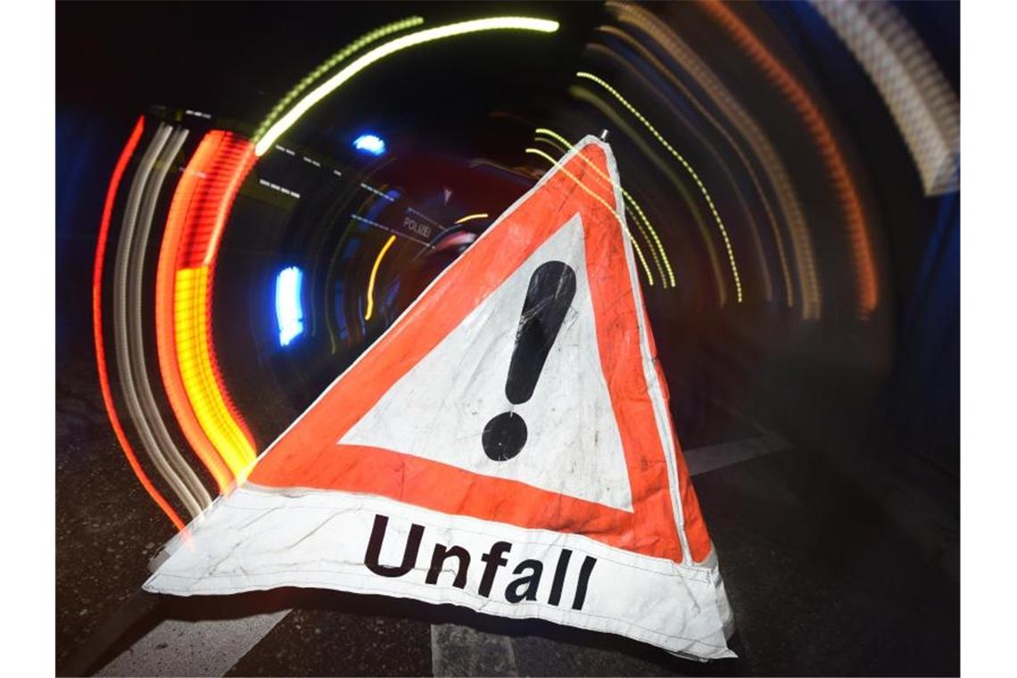 Warndreieck mit dem Schriftzug „Unfall“ steht auf der Straße. Foto: Patrick Seeger/Archivbild