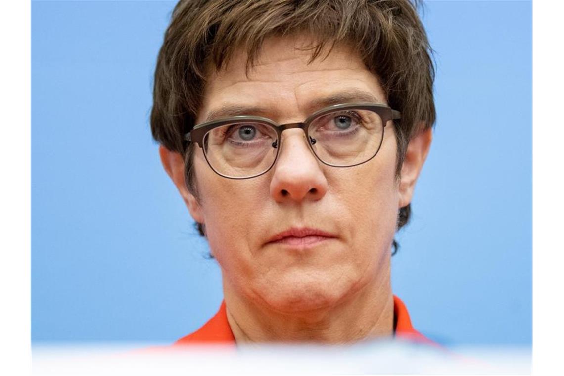 Annegret Kramp-Karrenbauer Mitte vergangener Woche während einer Pressekonferenz. Foto: Monika Skolimowska/dpa-Zentralbild/dpa