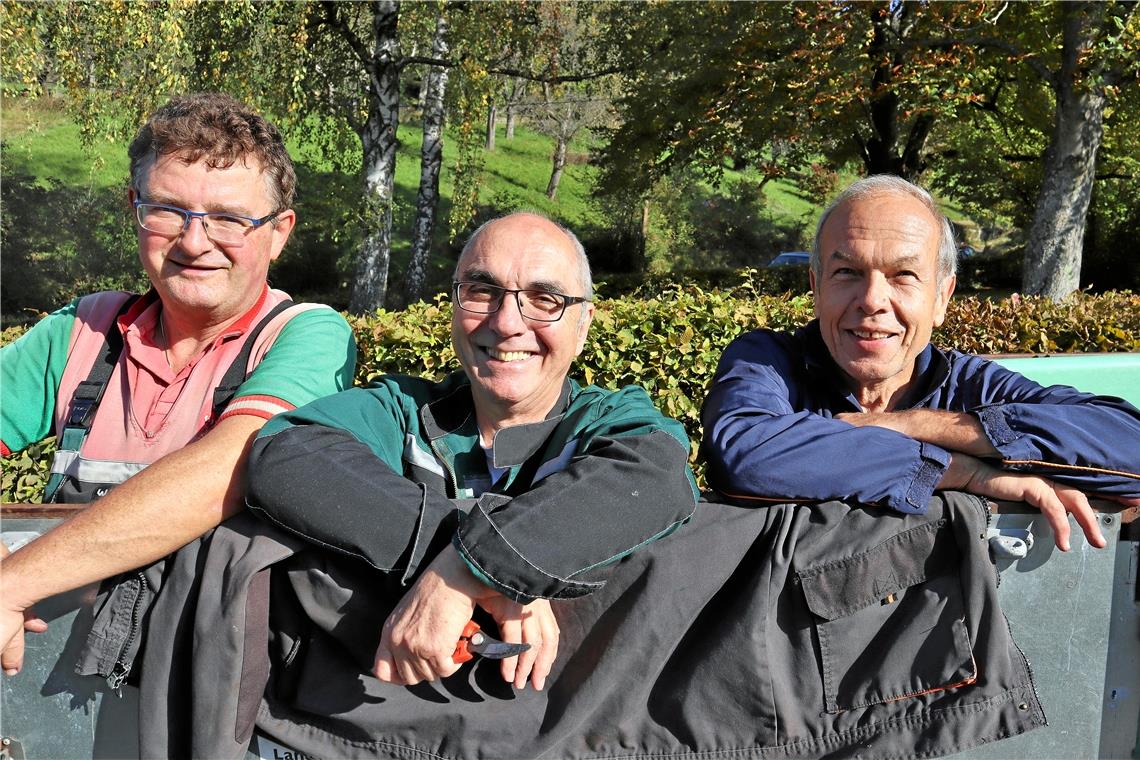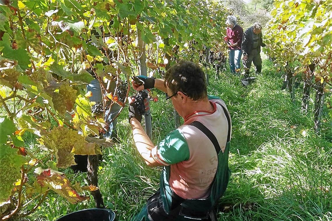 Auenwald. Ein schönerer Arbeitsplatz ist kaum denkbar. Die hügelige Landschaft der Backnanger Bucht breitet sich zu den Füßen des Betrachters aus, der Blick schweift kilometerweit in die Ferne. „Die Arbeit an der frischen Luft ist mein Lebenselixier“, bekennt Friedrich Strohmaier, einer der drei Vineure. Tatsächlich scheint die Tätigkeit als Weinbauer jung zu halten, dem 69-Jährigen sieht man sein Alter nicht an. Aber ein Zuckerschlecken ist die Winzertätigkeit nicht unbedingt. Die steile Hanglage des Weinbergs am Ebersberg bringt es mit sich, dass kaum Maschinen eingesetzt werden können, Handarbeit ist angesagt, die auch mal in Knochenarbeit ausartet.