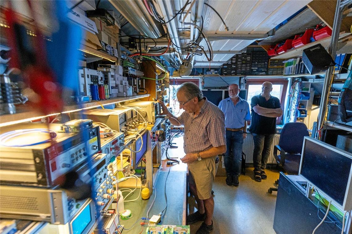 Funkamateur Helmut Volpp (vorne) kann auf seinem Dachboden Funksignale aus der ganzen Welt empfangen.