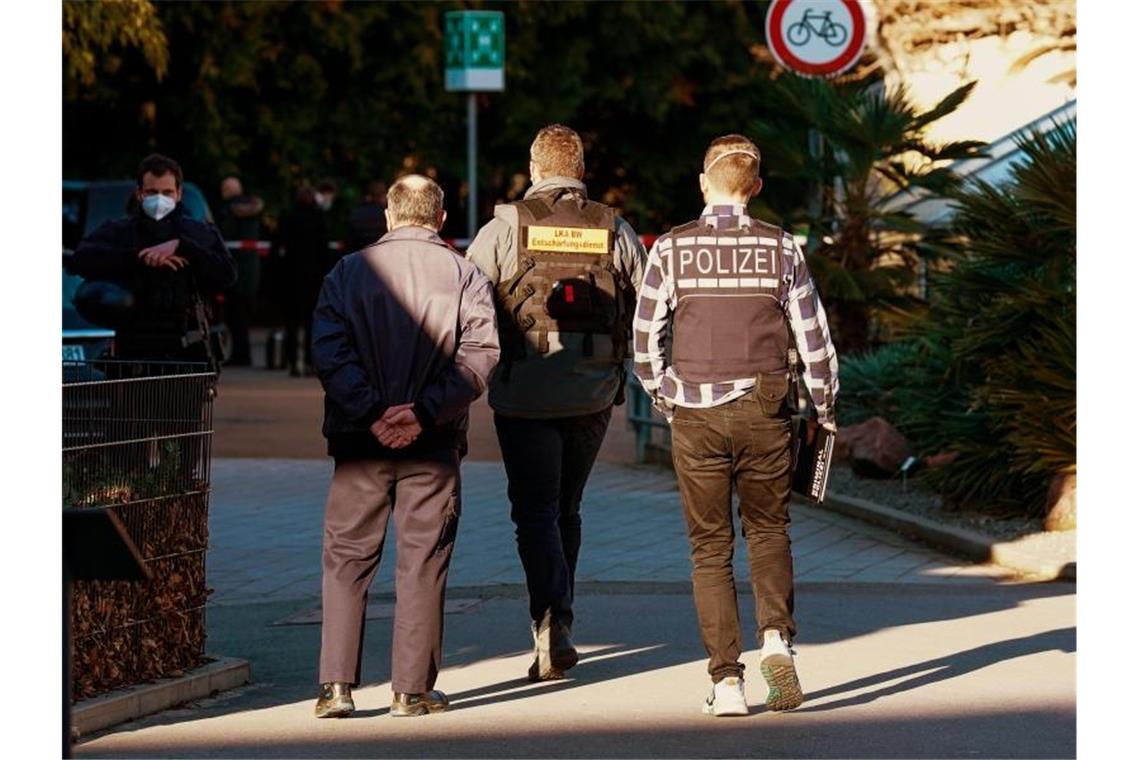Polizeibeamte sichern Spuren am Gelände des Botanischen Gartens der Heidelberger Universität. Hier ist es zuvor zu einem Amoklauf gekommen. Foto: Uwe Anspach/dpa