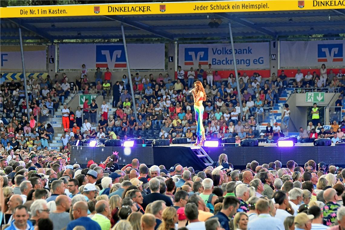 Auch das zweite Heimspiel von Andrea Berg in der Aspacher Wir-machen-Druck-Arena am Samstag war ausverkauft. Die Stimmung bei den Fans nach zwei Jahren Coronapause war bestens.