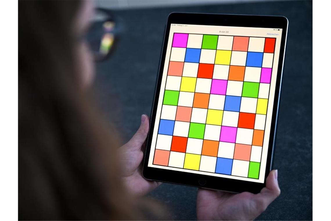 Ein Tablet mit Baby-Sprach-Labor-App. Foto: Felix Kästle/dpa/Archivbild