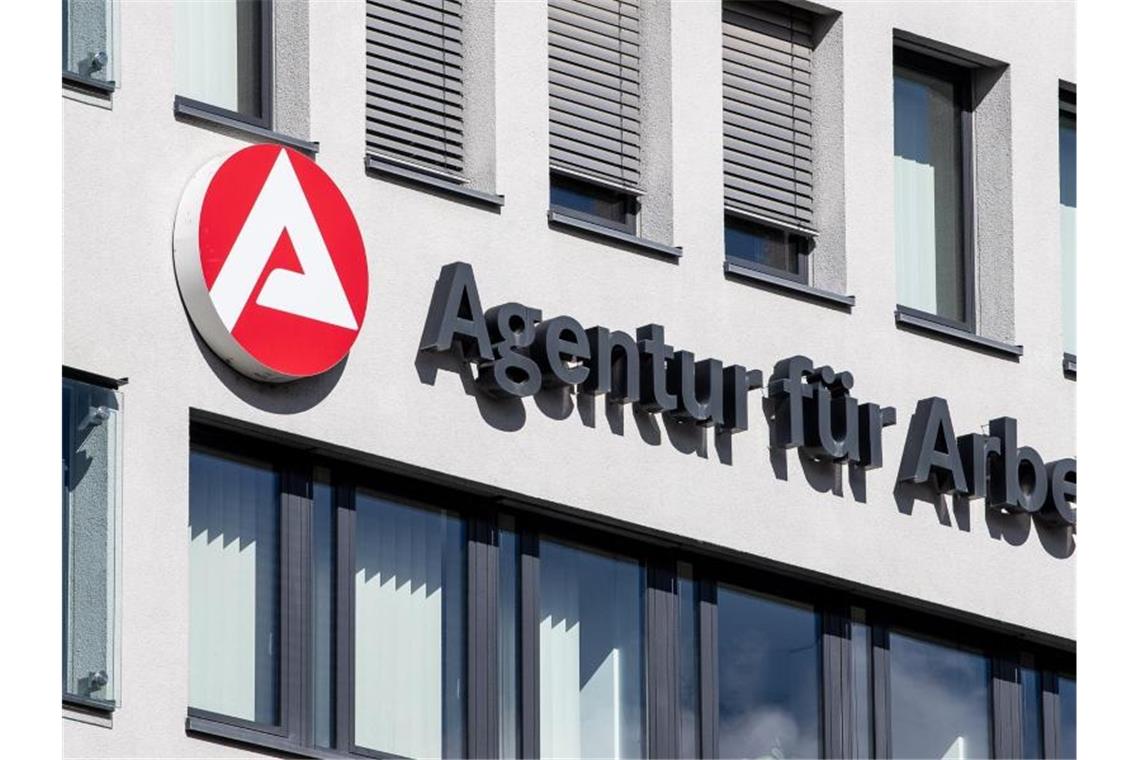 Der Schriftzug der Agentur für Arbeit ist an einem Gebäude angebracht. Foto: Fabian Sommer/Archivbild