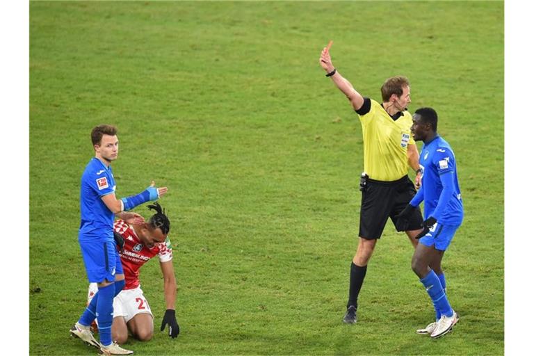 dpa Frankfurt/Main. Mittelfeldspieler Dennis Geiger von der TSG 1899 Hoffenheim ist nach seiner Roten Karte beim 1:1 in Mainz für drei Bundesliga-Spiele... mehr...