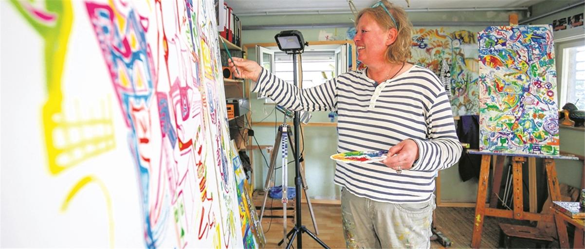 Betritt man ihr Atelier, fallen sofort die bunt bemalten Wände auf. „Pinselabstrichbilder“ nennt sie die Gemälde, die sich aus zahlreichen... mehr...