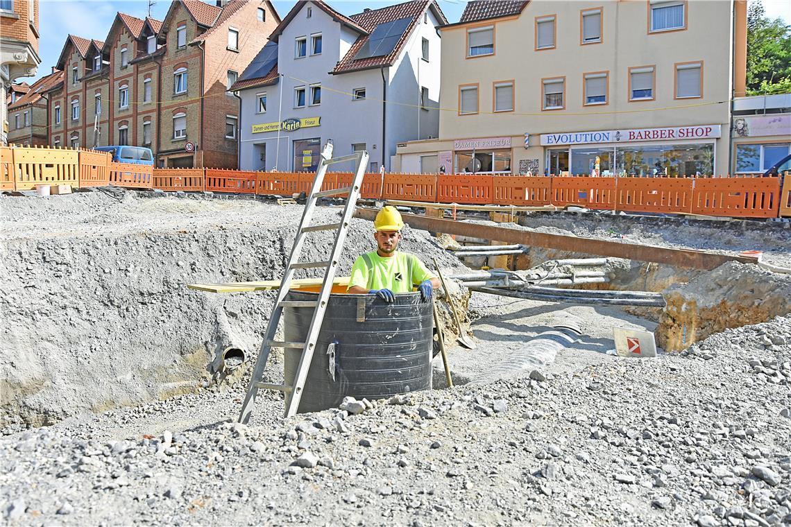 Am Kreisel Aspacher Tor wurden die Kanalarbeiten bereits abgeschlossen. Jetzt geht’s weiter mit Gas, Wasser und Strom. Foto: Tobias Sellmaier