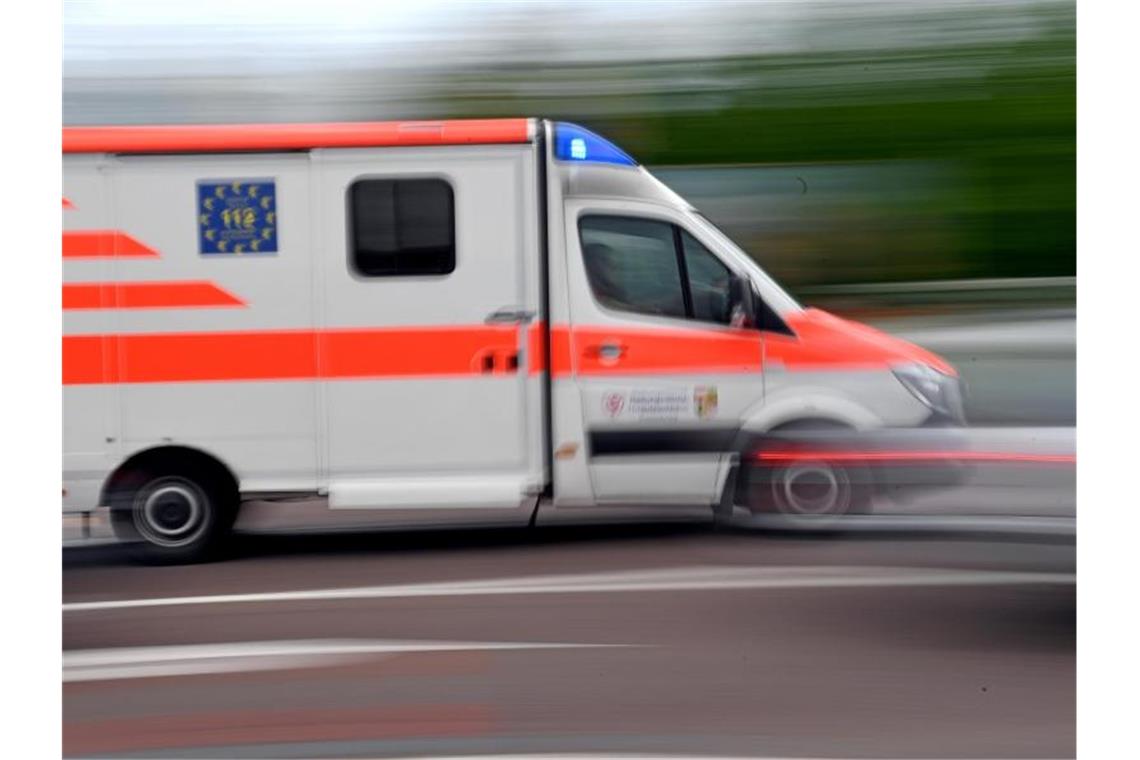 Ein Krankenwagen fährt mit Blaulicht auf einer Straße. Foto: Hendrik Schmidt/dpa-Zentralbild/ZB/Symbolbild