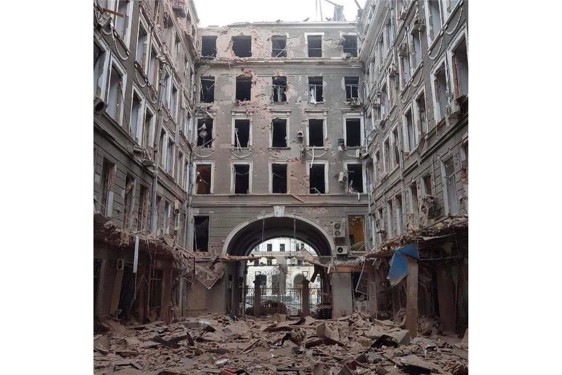 Hier hat Polina Butava bis vor Kurzem noch Deutschkurse besucht. Nur eines von vielen zerstörten Häusern in der Region, die mit militärischen Zielen nichts zu tun haben. Foto: privat