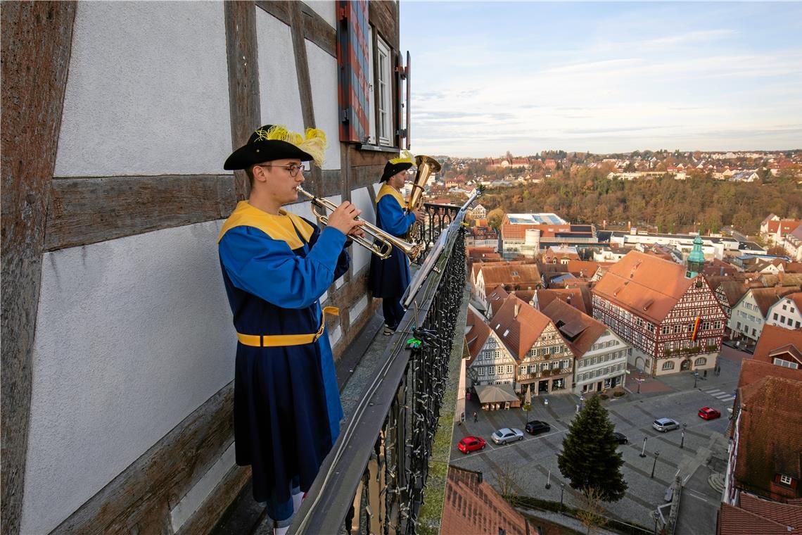 Egal ob’s regnet, stürmt, schneit oder eine Pandemie die Welt verschüttelt: Sonntagmorgens um neun spielen die Turmbläser hoch oben auf dem Michaelsturm in Backnangs Stadtmitte. Die Tradition reicht bis 1848 zurück.