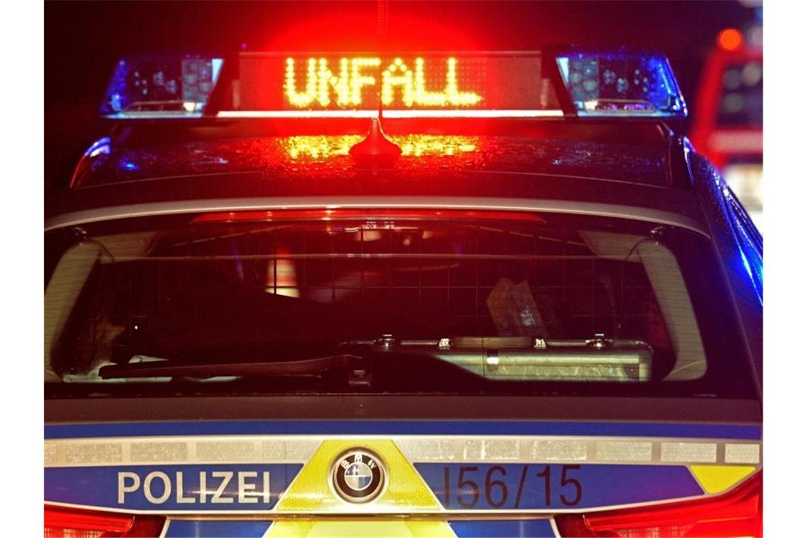 Ein Streifenwagen der Polizei steht an einer Unfallstelle. Foto: Stefan Puchner/dpa/Symbolbild