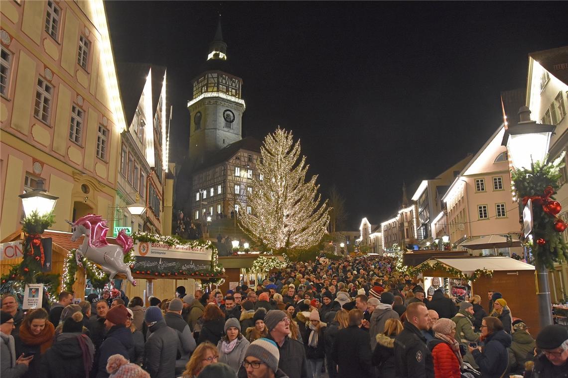 Traumhafte, adventliche Stadtkulisse: Keiner will den Weihnachtsmarkt verpassen, am Samstagabend ist in der Marktstraße kaum noch durchzukommen. Fotos: T. Sellmaier
