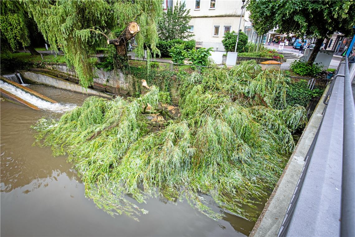 Baumteile stürzen in die Murr und müssen beseitigt werden