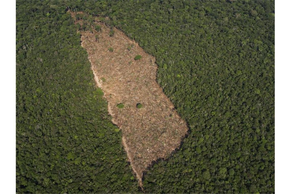 Ein abgeholztes Waldstück in der Mitte eines Waldgebietes in der brasilianischen Amazonasregion. Foto: Victor R. Caivano/AP/dpa