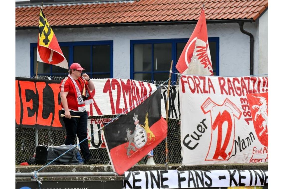Der Fußballfan Nico Schoch feuert seine TSG Backnang an. Foto: Jan-Philipp Strobel/dpa