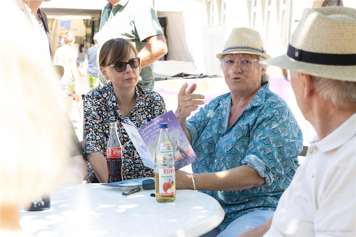 Françoise Michaud (links) ist aus Annonay zum Straßenfest gereist. Foto: Alexander Becher