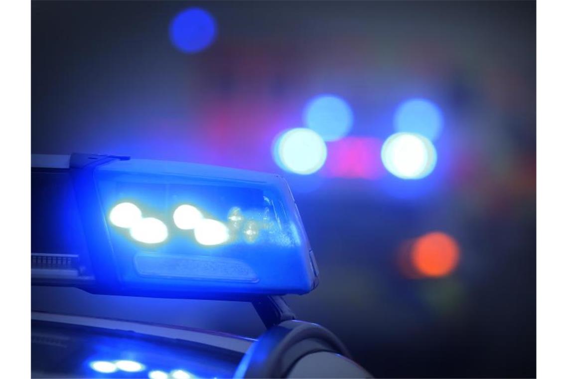 Ein Polizeiauto mit eingeschaltetem Blaulicht steht an einer Unfallstelle. Foto: Karl-Josef Hildenbrand/dpa
