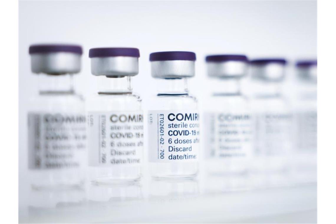 Fläschchen des Comirnaty-Impfstoffs von Biontech/Pfizer. Foto: Christian Charisius/dpa