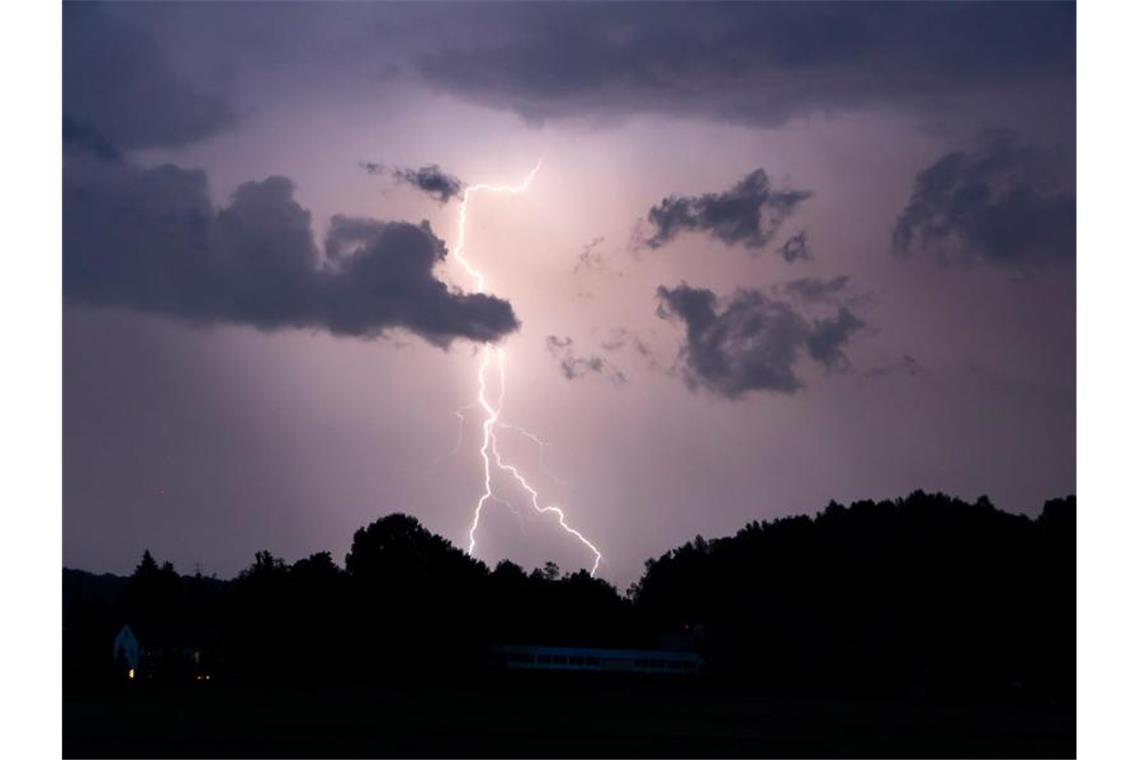 Ein Blitz erhellt den Nachthimmel. Foto: Tobias Hartl/Vifogra/dpa/Symbolbild