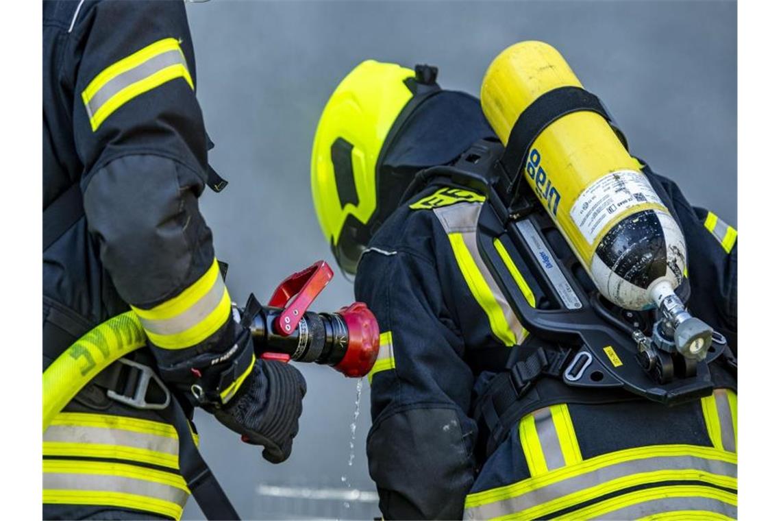 Feuerwehrleute bereiten einen Löschangriff vor. Foto: David Inderlied/dpa/Symbolbild