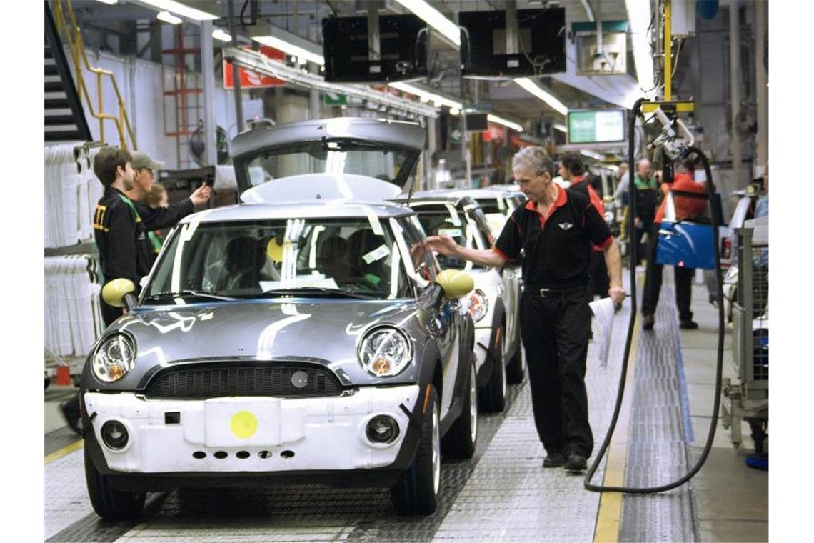 Produktion von Mini-Fahrzeugen im Werk in Oxford: Gut 60.000 Arbeitsplätze in der deutschen Autoindustrie sind vom Brexit betroffen. Foto: BMW/BMW AG/dpa