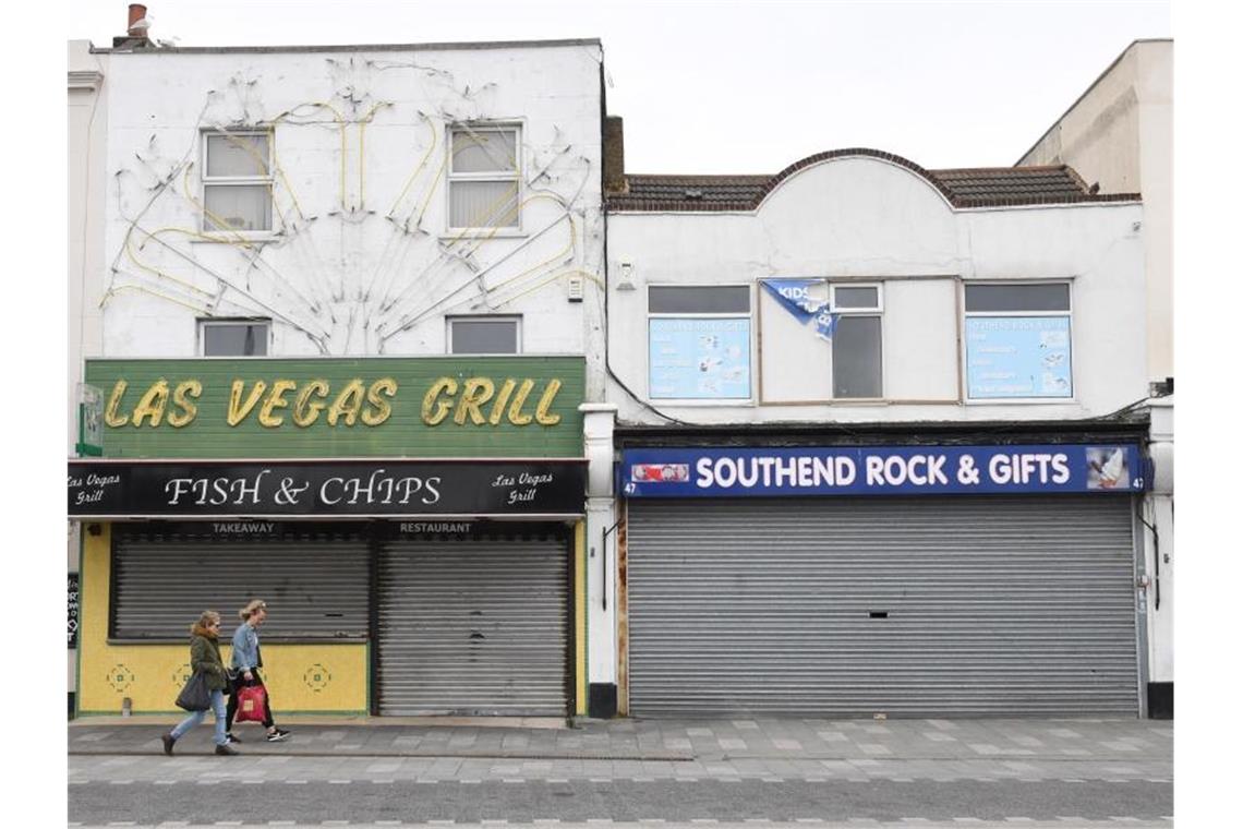 Geschlossene Geschäfte und Restaurants im April im Badeort Southend. Foto: Stefan Rousseau/PA Wire/dpa