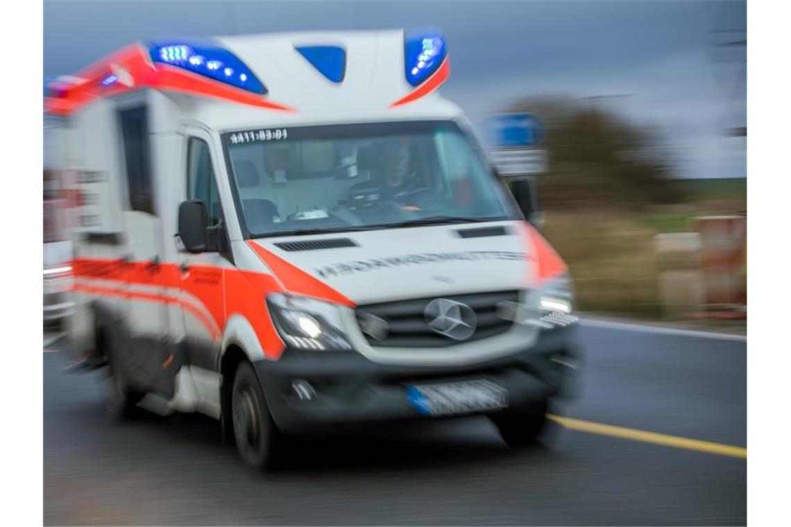 Ein Rettungswagen mit Blaulicht fährt über eine Straße. Foto: Jens Büttner/Archivbild