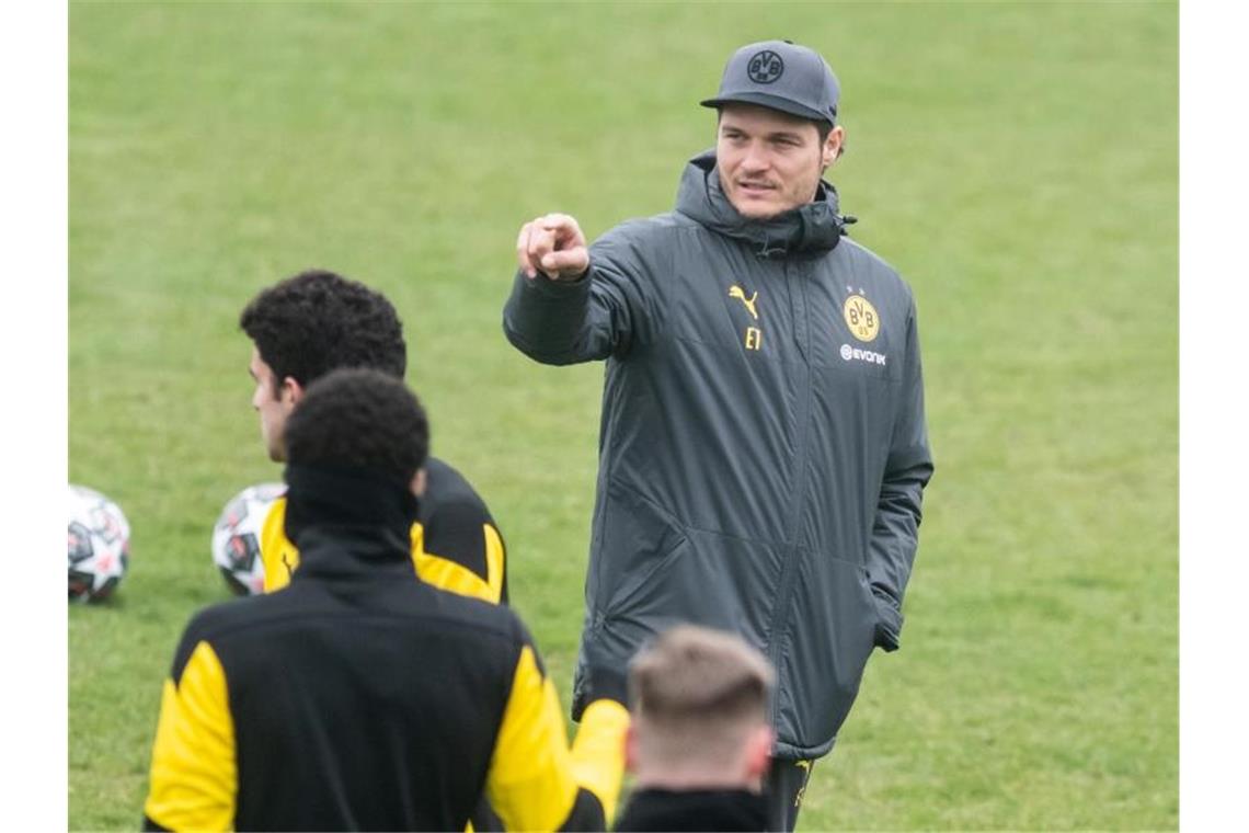 Trainer Edin Terzic leitet das Training seiner Mannschaft. Foto: Bernd Thissen/dpa/Archivbild