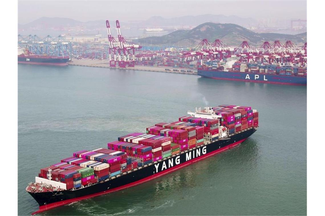 Ein Containerschiff verlässt die Werft in Qingdao in der ostchinesischen Provinz Shandong. Foto: Uncredited/CHINATOPIX/dpa