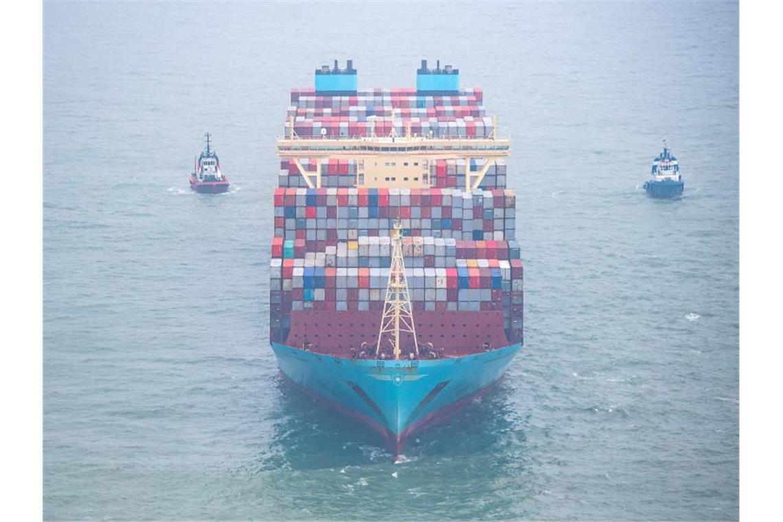 400 Meter lang: Das Containerschiff „Mumbai Maersk“. Foto: Dietmar Hasenpusch/dpa/Archiv