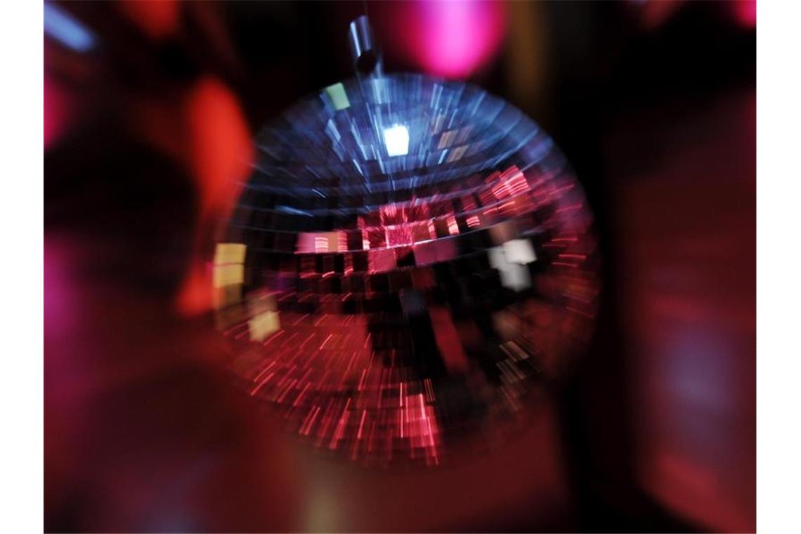Scheinwerferlicht spiegelt sich in einer Discokugel. Foto: picture alliance / dpa/Symbolbild