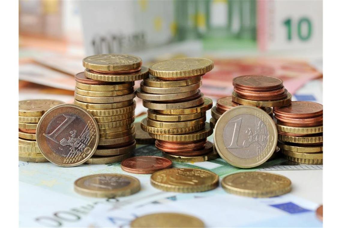 Euro-Münzen auf Euro-Banknoten. Foto: Tobias Hase/dpa/Symbolbild