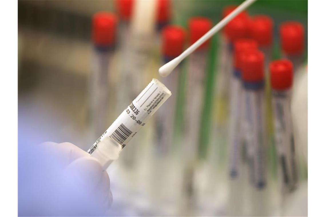 Ein Wattestäbchen mit einem Abstrich wird im Labor für einen Corona-Test verarbeitet. Foto: Oliver Berg/dpa/Symbolbild