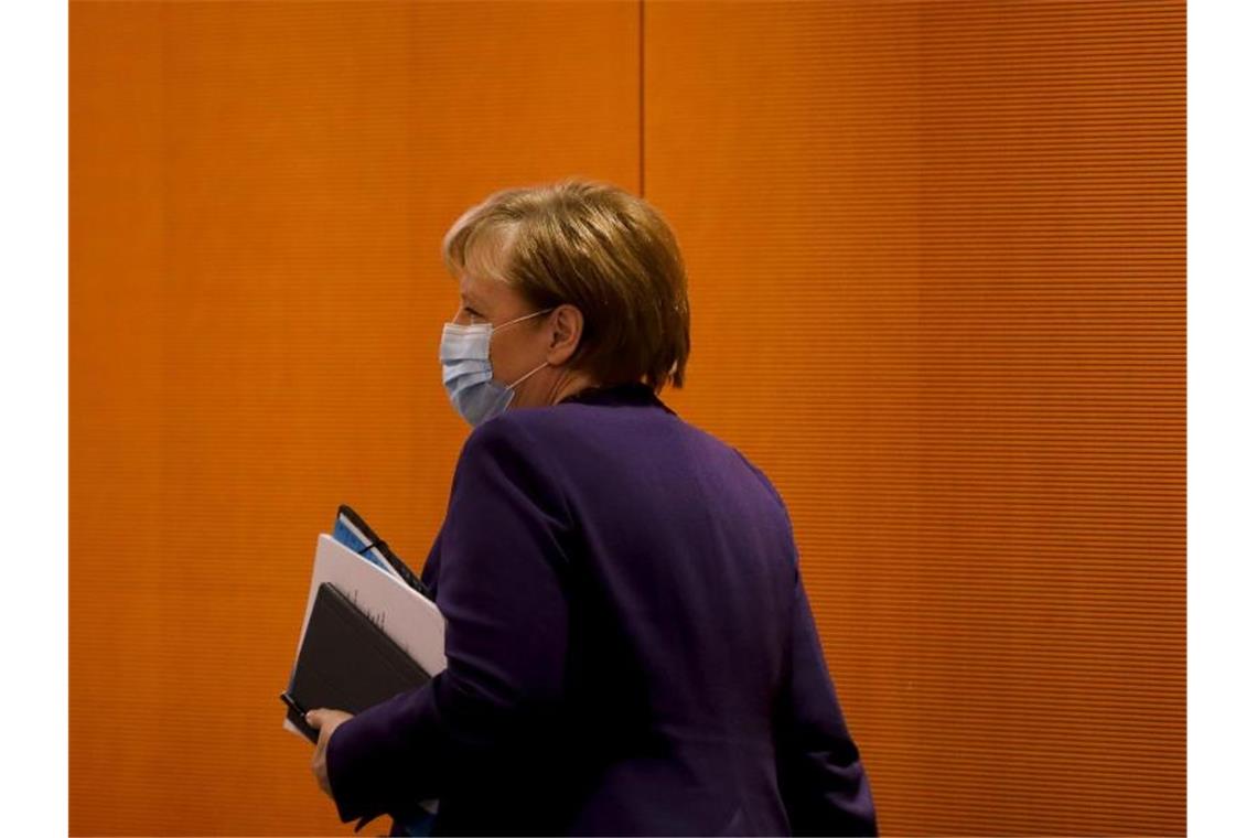 Bundeskanzlerin Angela Merkel (CDU) kommt zur wöchentlichen Kabinettssitzung der Bundesregierung im Kanzleramt. Foto: Markus Schreiber/AP POOL/dpa