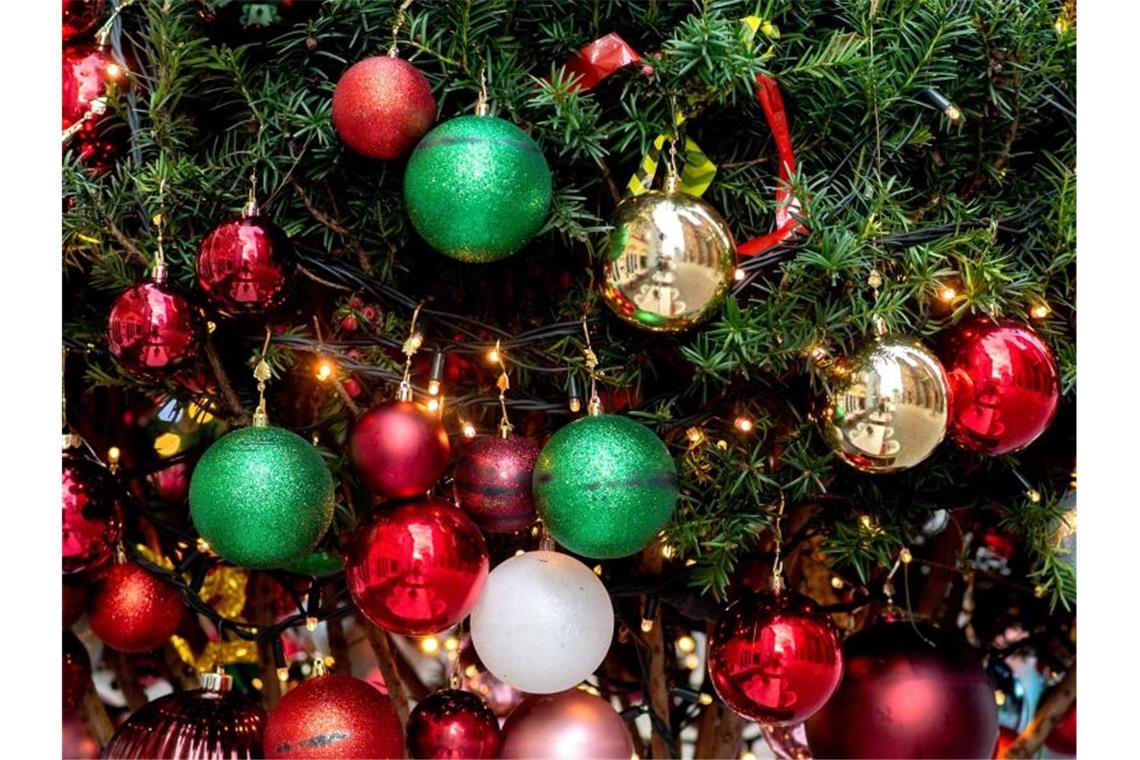 Ein Nadelbaum ist weihnachtlich geschmückt. Foto: Hauke-Christian Dittrich/dpa/Symbolbild