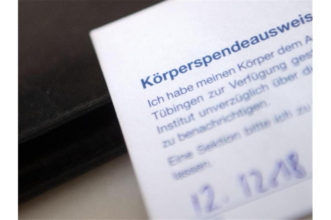 Der Körperspendeausweis liegt auf einem Tisch. Foto: Marijan Murat/dpa