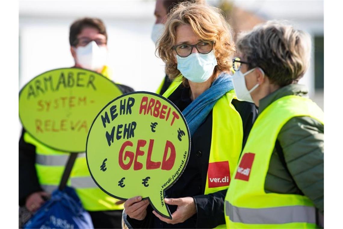Beschäftigte des öffentlichen Dienstes machen bei einer Demonstration in Berlin auf die Forderungen der Gewerkschaften aufmerksam. Foto: Bernd von Jutrczenka/dpa