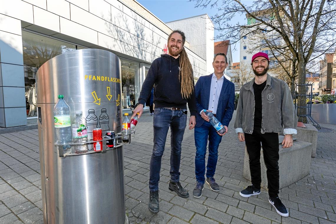 Pascal Weber vom Stadtjugendring, Tiefbauamtsleiter Lars Kaltenleitner und Jugendvertreter Silvan Vollmer (von links) haben sich für den Pfandring eingesetzt. Foto: A. Becher