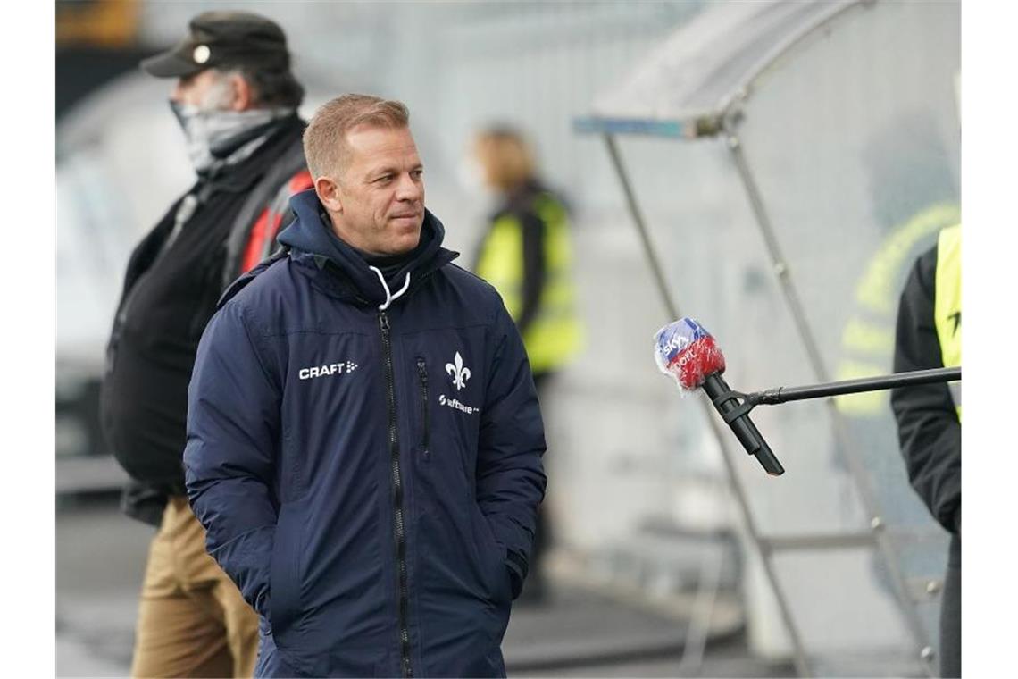 Der Darmstädter Trainer Markus Anfang bei einem Interview. Foto: Hasan Bratic/dpa