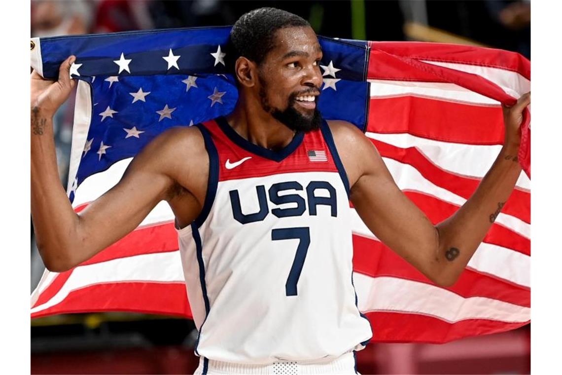 Basketball-Star Kevin Durant hat mit dem US-Team die Goldmedaille gewonnen. Foto: Swen Pförtner/dpa