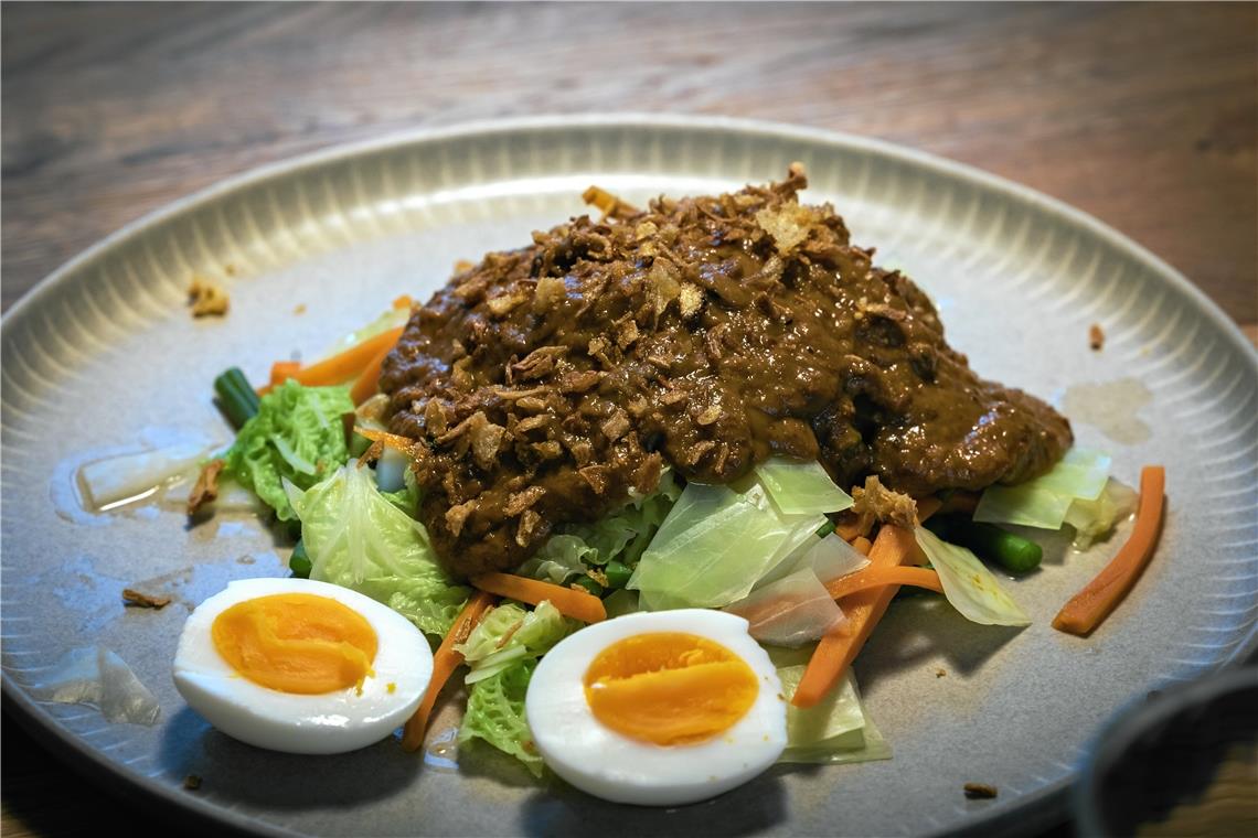 „Gado Gado“ ist ein Gemüsesalat mit Erdnusssoße.